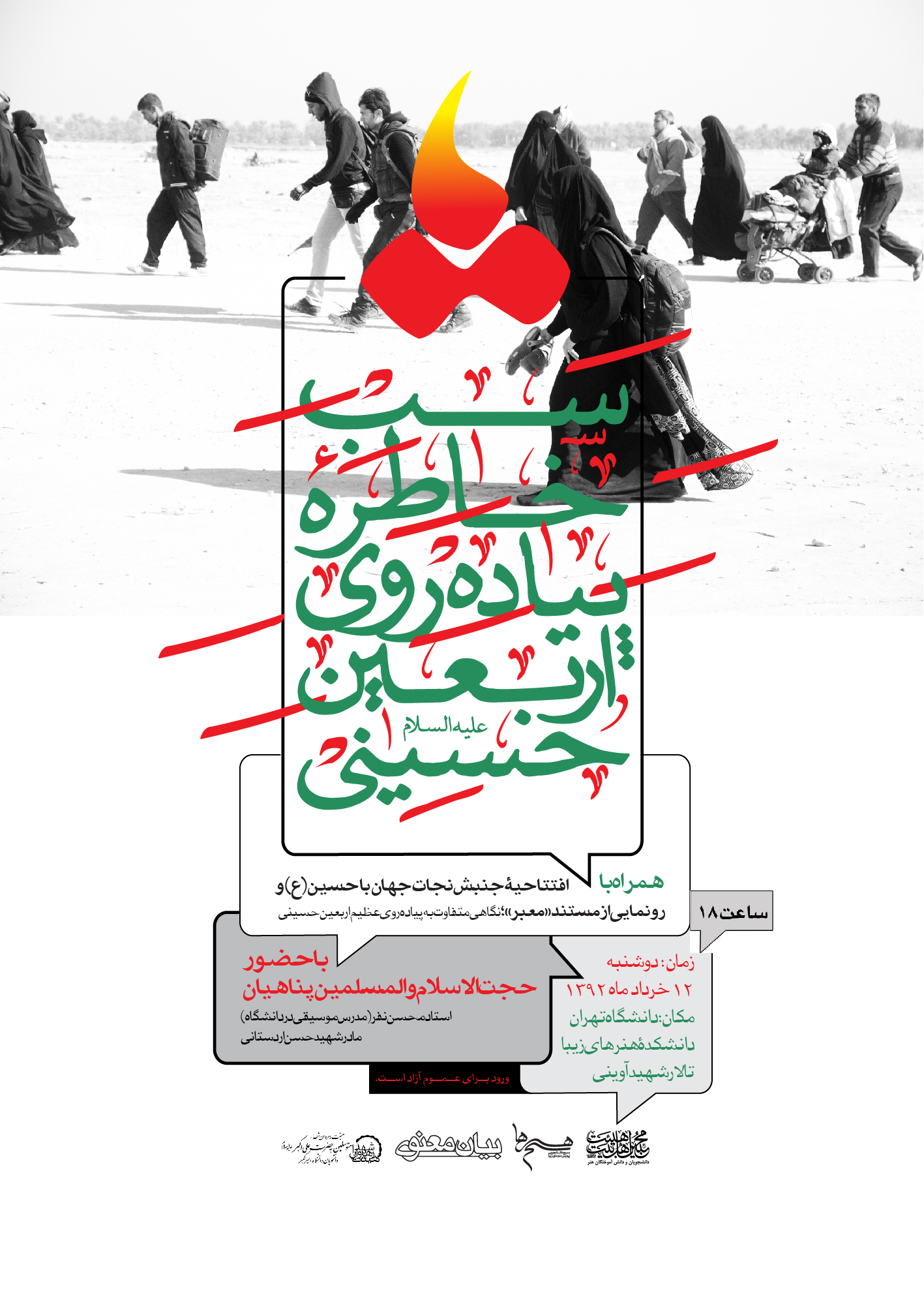 این شب خاطره با هدف بزرگداشت و بررسی ابعاد مختلف بزرگترین پیادهروی و همایش خودجوش مردمی در تاریخ جهان که هر ساله توسط علاقمندان به شخصیت امام حسین(ع) رقم میخورد، با مشارکت تشکلهای دانشجویی «هیئت دانشجویان و دانشآموختگان هنر(هیئت محبین اهلبیت(ع))، بسیج دانشجویی پردیس هنرهای زیبا، هیئت پیروان شهدای دانشجویان دانشگاه امیرکبیر» برگزار میشود. گفتنی است با توجه به هماهنگیهای انجام شده توسط برگزارکنندگان مراسم، ورود برای عموم آزاد است.